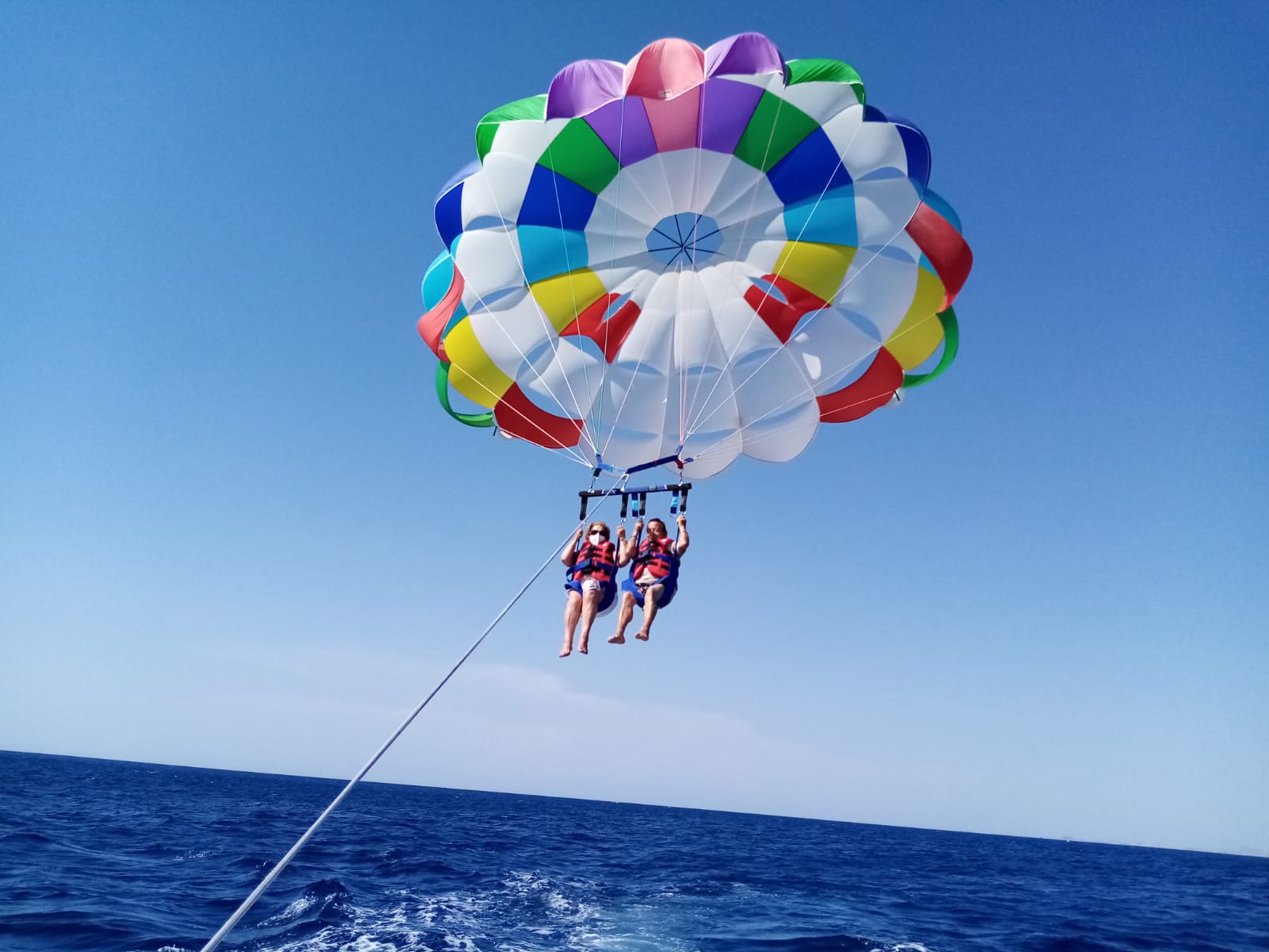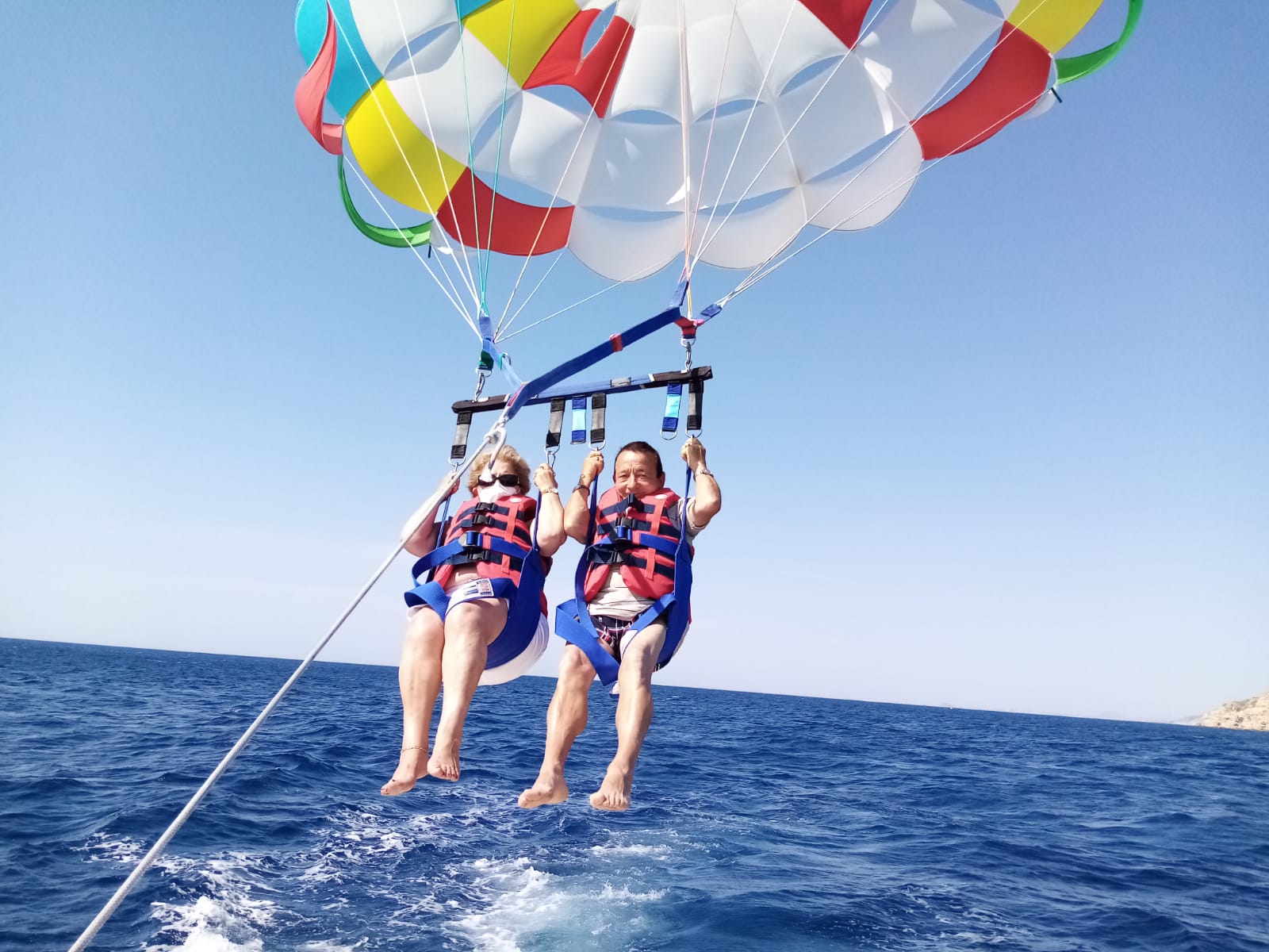 Parasailing Benidorm. Vuela sobre el Mar a bordo de un paracaídas. Podéis volar hasta 5 personas a la vez. La experiencia tiene una duración de 30 minutos a una hora dependiendo del número de personas que vayan en el barco. En el barco iréis con música para amenizar el viaje y daréis un paseo en barco por la bahía. El vuelo en paracaídas tiene una duración de 15 minutos y volareis a una altitud aproximada de 150 metros. Cuando termine el vuelo le invitaremos a una refrescante bebida. Vive una experiencia inolvidable estas vacaciones en Benidorm con toda la familia.